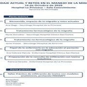 El pasado 10 de octubre, miembros del Grupo de Estudio de Cefaleas (GECSEDENE) participaron en el Hospital La Princesa (Sala Conocimiento) en una jornada formativa sobre el “Abordaje actual y retos en el manejo de la migraña”, dirigida a profesionales de la enfermería neurológica.